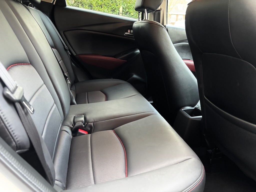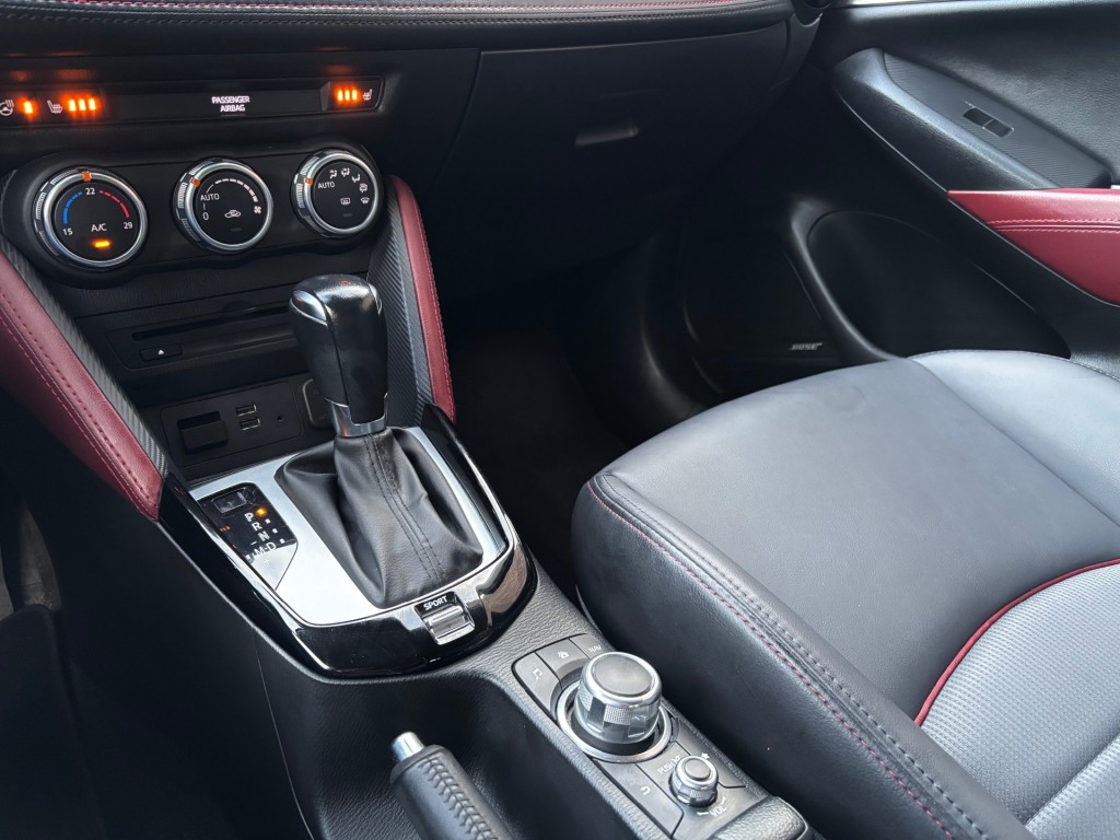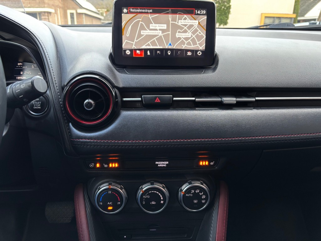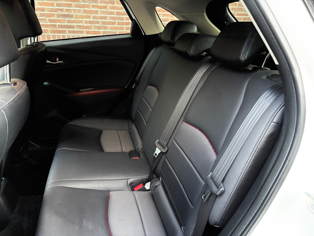 Mazda CX-3, GT-M uitvoering, 4-2018, 142.000km, 120pk, automaat, LED dagrijverlichting, xenon verlichting, privacy glas, parkeersensoren achter, keyless entry / keyless go, afneembare trekhaak, mistlampen voor, achteruitrij camera, 18 inch lichtmetalen velgen, lederen stuurwiel met radiobediening, lederen bekleding, stoelen voor in hoogte verstelbaar, ISOFIX, elektrische ramen voor en achter, elektrische spiegels inklapbaar, Bose geluidsinstallatie, navigatie, cruise control adaptief, bluetooth, USB / AUX aansluiting, head up display, licht en regensensor, airco, stoelverwarming voor, stuurverwarming, boordcomputer.