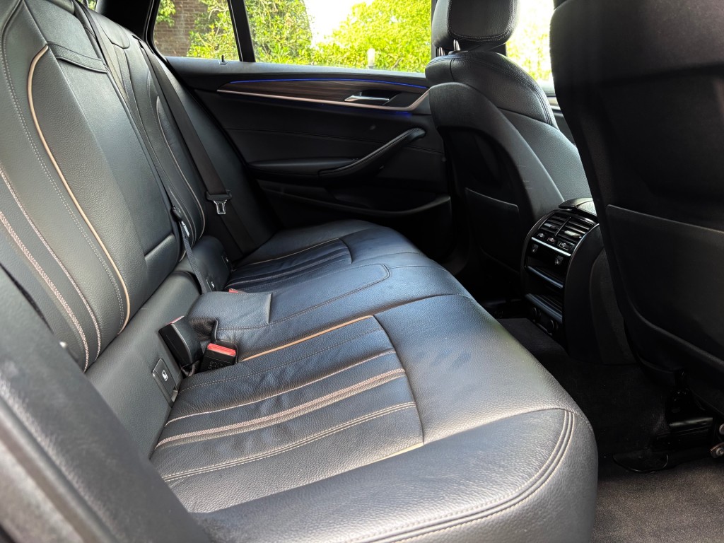 Bmw 540i xDrive, 4x4, 340pk, 6 cilinder, Luxury line, 9-2017, 141.000km, LED dagrijverlichting, xenon verlichting, parkeersensoren voor en achter, lichtmetalen velgen, metallic lak, dodehoek detectie, spiegels elektrisch inklapbaar, afneembare trekhaak, getint glas, aluminium dakrails, lederen stuurwiel met radiobediening op stuur, luxe lederen bekleding, groot navigatiescherm, Apple CarPlay, elektrisch bedienbare stoelen voor, stoelverwarming voor en achter, zwarte sportieve hemel, elektrische ramen voor en achter, elektrische spiegels inklapbaar, elektrische achterklep, licht en regensensor, head up display, cruise control adaptief, lane assist, automatische airco duel zone, bluetooth, USB / AUX aansluiting, 18 inch lichtmetalen M pakket velgen