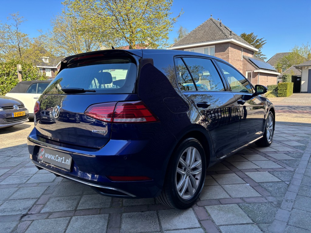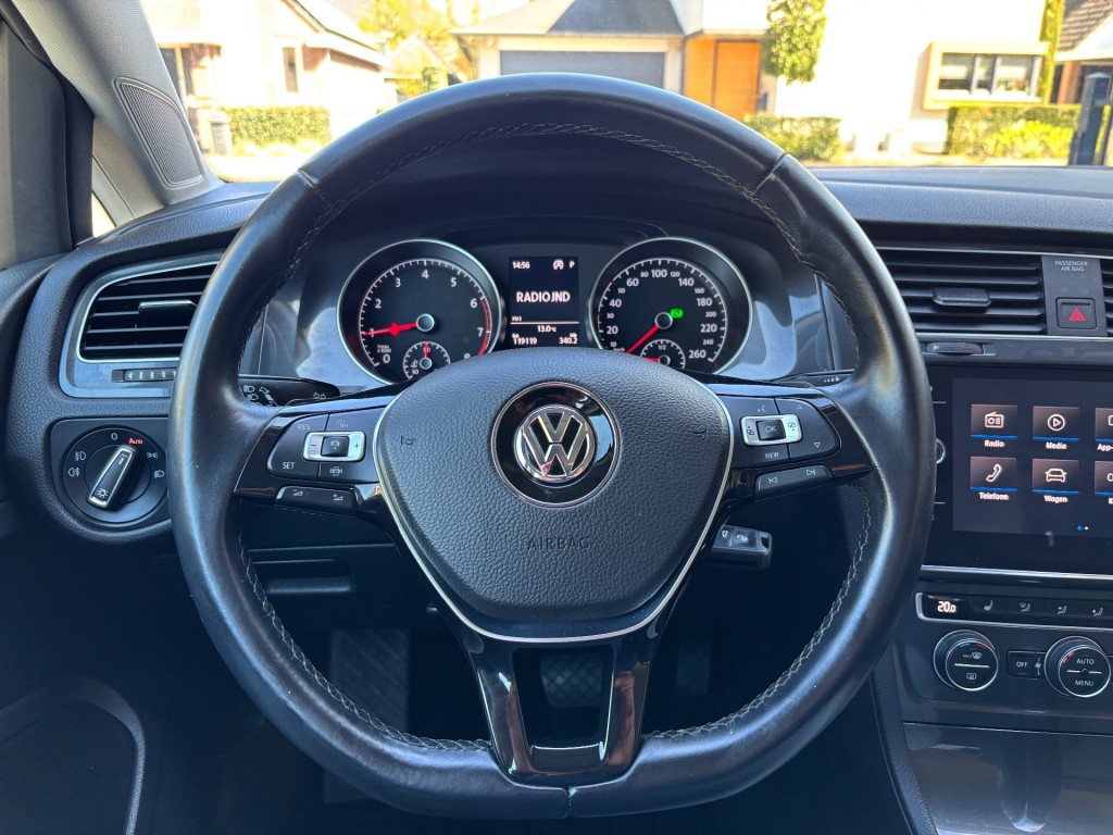 Vw Golf 7.5, 1.5 TSI, 131pk, DSG automaat, 10-2018, LED dagrijverlichting, parkeersensoren voor en achter, 16 inch lichtmetalen velgen, getint glas, afneembare trekhaak, lederen stuurwiel, radiobediening op stuur, cruise control adaptief, boordcomputer, licht en regensensor, middenarmsteun, elektrische spiegels inklapbaar, elektrische ramen voor en achter, ISOFIX, stoelen voor in hoogte verstelbaar, schakelflippers achter stuur, Apple CarPlay, stoelverwarming voor, automatische airco duel zone, start/stop systeem.