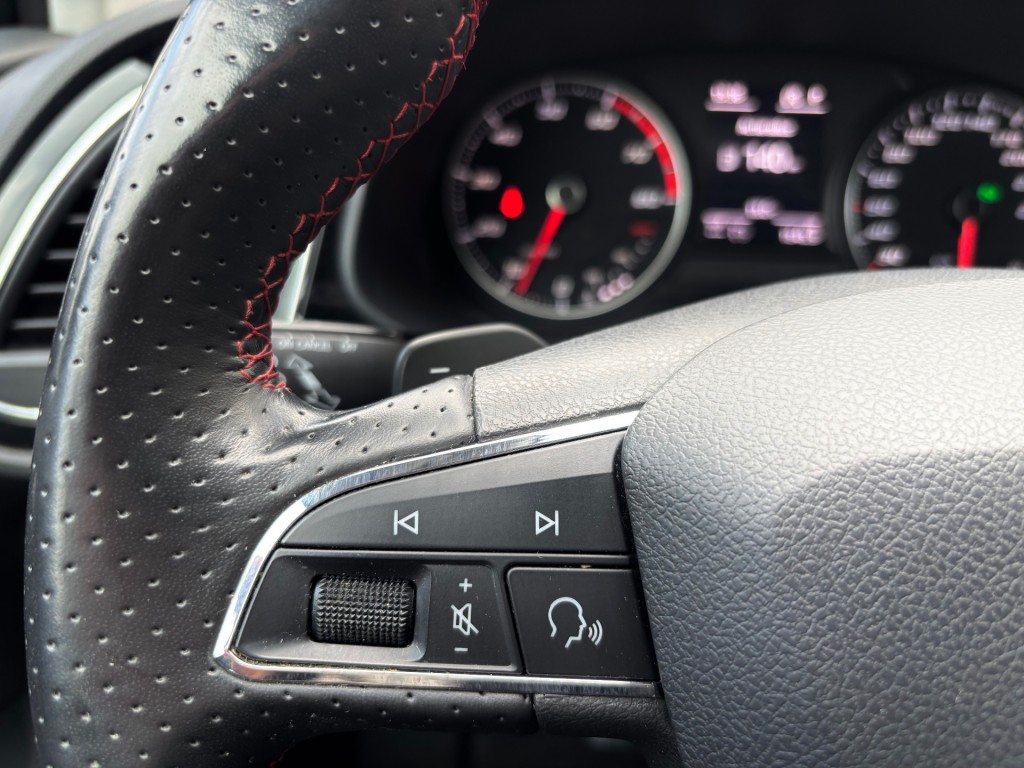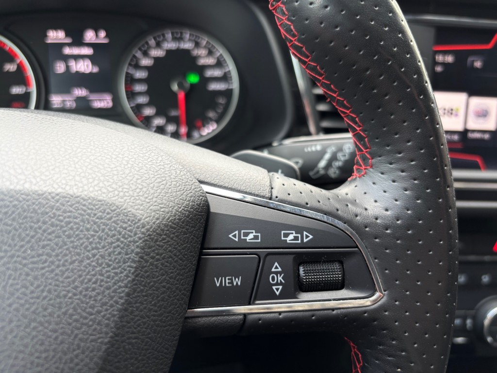 Seat Leon 1.8 TSI, automaat, 179pk, FR uitvoering, 01-2018, LED verlichting / dagrijverlichting, xenon verlichting, mistlampen voor, parkeersensoren voor en achter, keyless entry / keyless go, dakrails, 17 inch lichtmetalen velgen, afneembare trekhaak, dakrails, lederen stuurwiel, sportieve stoelen, sportief stuurwiel, radiobediening op stuur, automatische airco duel zone, stoelverwarming, Apple CarPlay, Android auto, cruise control, USB / AUX aansluiting, bluetooth, ISOFIX, front assist, elektrische ramen voor en achter, elektrische spiegels inklapbaar, licht en regensensor, Seat sound, boordcomputer, schakelflippers achter stuur. sfeerverlichting.