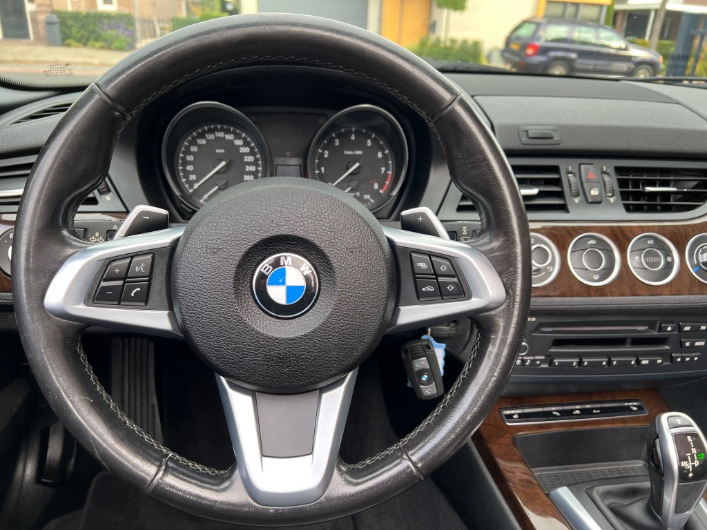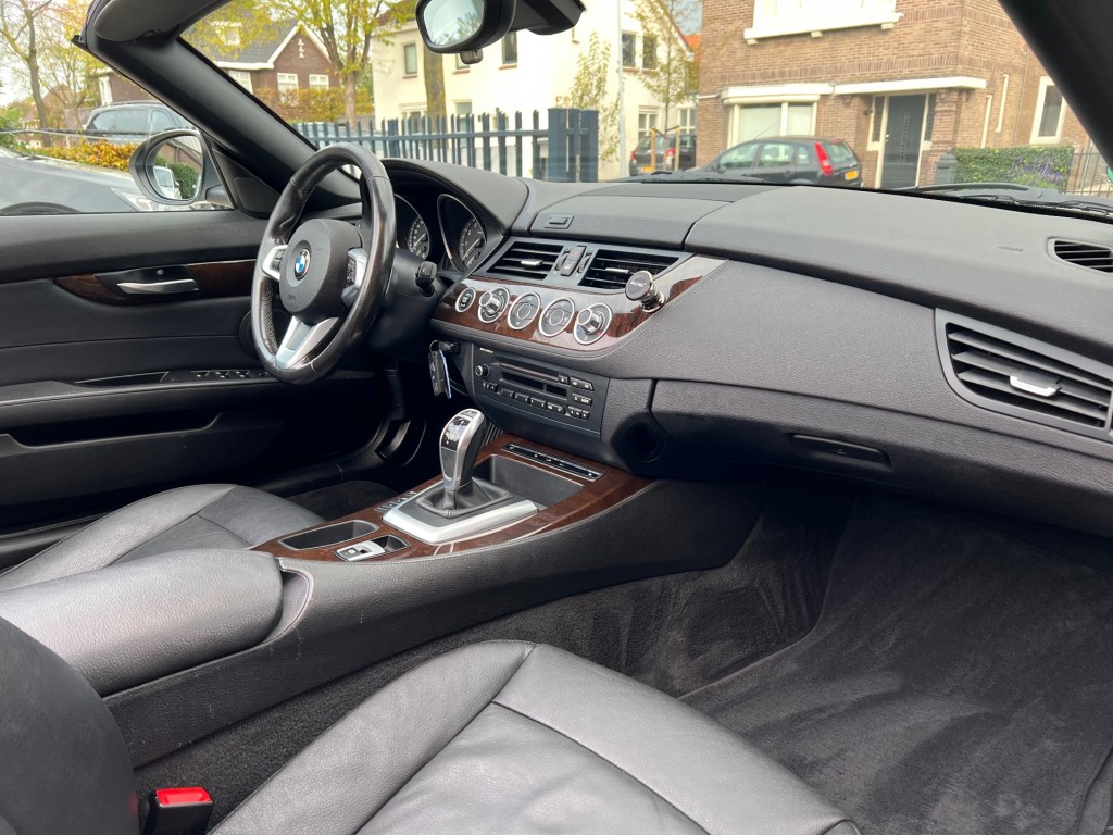 Bmw Z4 roadster 3.5i, 306pk, automaat, xenon verlichting, parkeersensoren voor en achter, hardtop, elektrische dak, lichtmetalen velgen, 88.000km, two tone, zwart dak, lederen bekleding, radiobediening op stuur, lederen stuurwiel, elektrische ramen, elektrische spiegels, stoel in hoogte verstelbaar, schakel flippers op stuur, licht en regensensor, automatisch dimmende binnenspiegel, stoelverwarming, radio cd speler, airco, start stop knop, elektrische handrem, aux aansluiting, bluetooth,