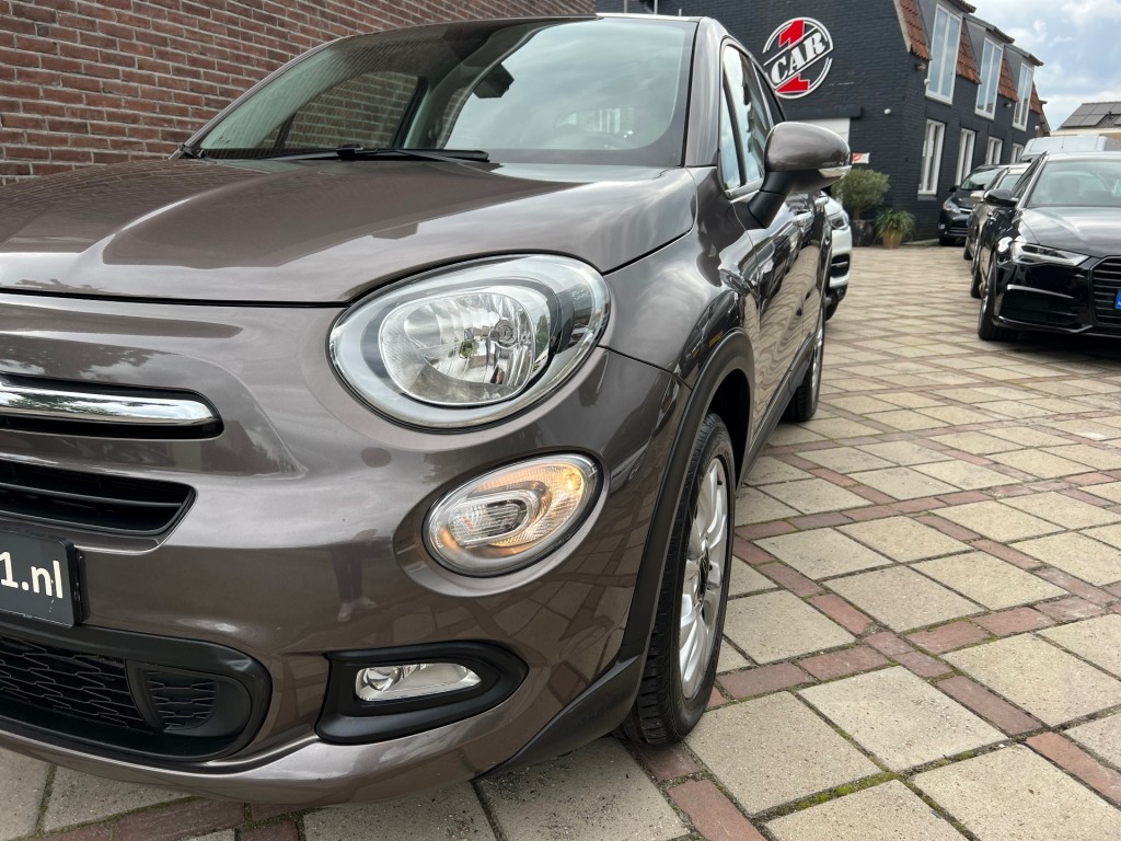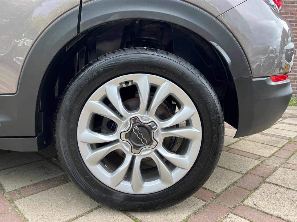 Fiat 500X, 1.4 Turbo, Lounge uitvoering, automaat, 136 pk, lichtmetalen velgen, mistlampen voor, chrome pakket, parkeersensoren achter, keyless entry / keyless go, dakspoiler, lederen stuurwiel, radiobediening op stuur, cruise control, bluetooth, stoel in hoogte verstelbaar, half lederen bekleding, ISOFIX, navigatie, elektrische ramen voor en achter, elektrische spiegels inklapbaar, boardcomputer, licht en regensensor, automatische airco duel zone, USB/AUX aansluiting, binnenspiegel automatisch dimmend.