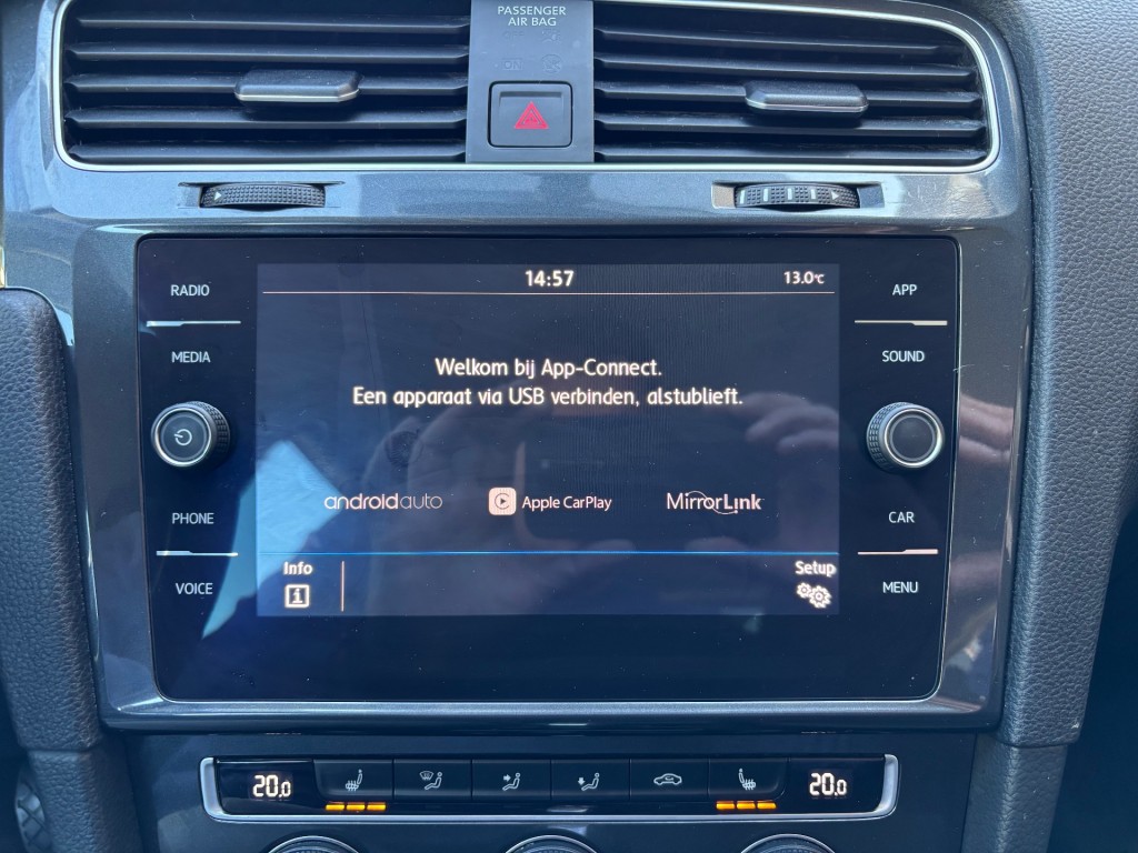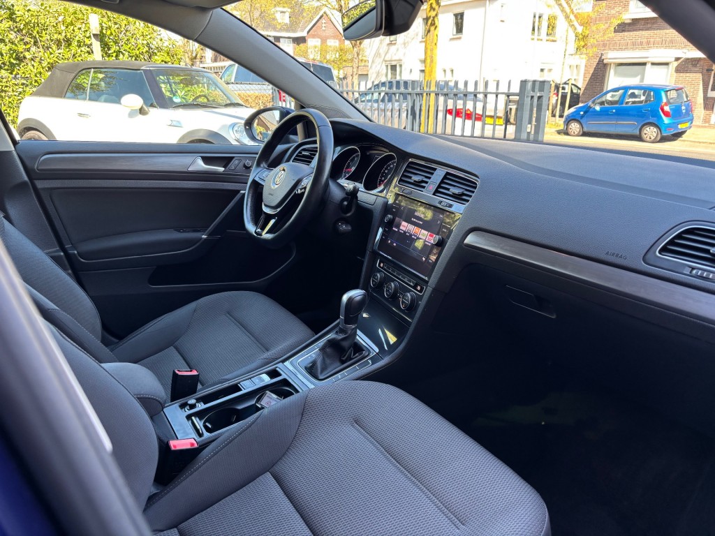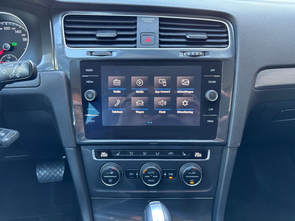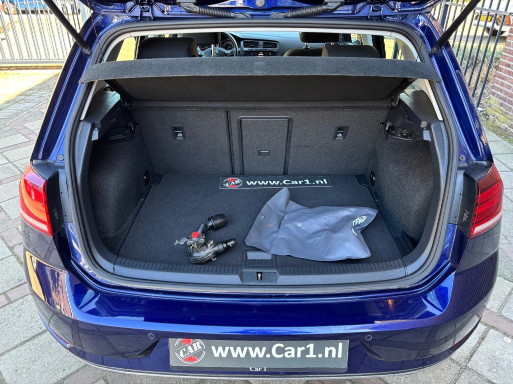 Vw Golf 7.5, 1.5 TSI, 131pk, DSG automaat, 10-2018, LED dagrijverlichting, parkeersensoren voor en achter, 16 inch lichtmetalen velgen, getint glas, afneembare trekhaak, lederen stuurwiel, radiobediening op stuur, cruise control adaptief, boordcomputer, licht en regensensor, middenarmsteun, elektrische spiegels inklapbaar, elektrische ramen voor en achter, ISOFIX, stoelen voor in hoogte verstelbaar, schakelflippers achter stuur, Apple CarPlay, stoelverwarming voor, automatische airco duel zone, start/stop systeem.