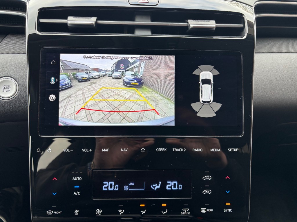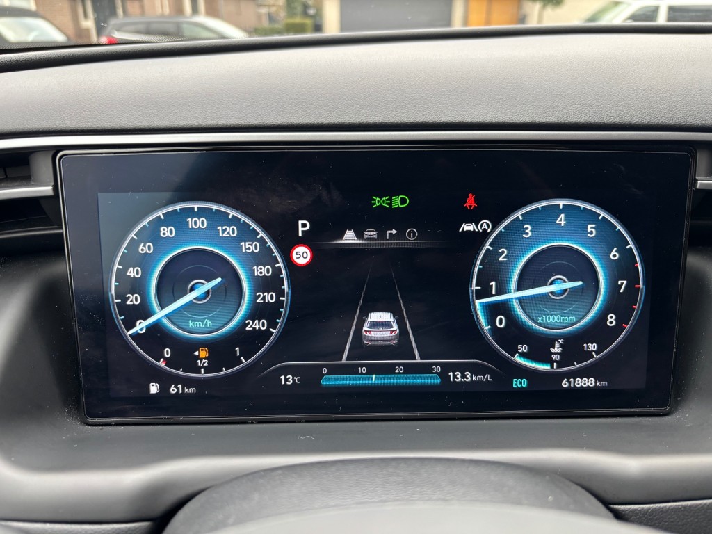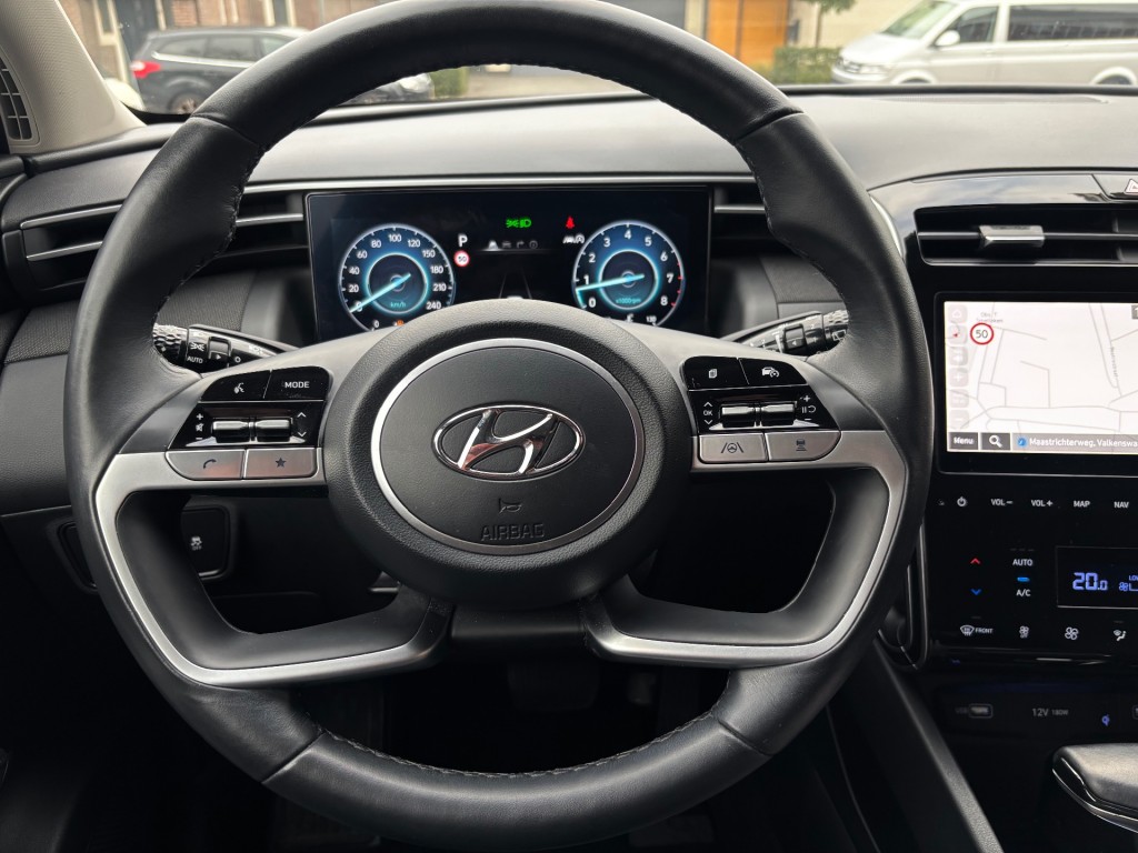 Hyundai Tucson 1.6 T-GDI MHEV, 150pk, 61.000km, 2-2023, 17 inch lichtmetalen velgen, achteruitrij camera, LED verlichting voor en achter, parkeersensoren voor en achter, dakrails, spiegels elektrisch inklapbaar, keyless entry keyless go, achteruitrij camera, elektrische achterklep, lederen stuurwiel, cruise control adaptief, lane assist, boordcomputer, bluetooth, USB aansluiting, draadloos telefoon laden, Apple CarPlay, navigatie, stoelverwarming voor en achter, stuurverwarming, start/stop systeem, airco duel zone,
